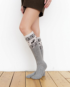 Теплые гольфы из монгольской шерсти серые с рисунком