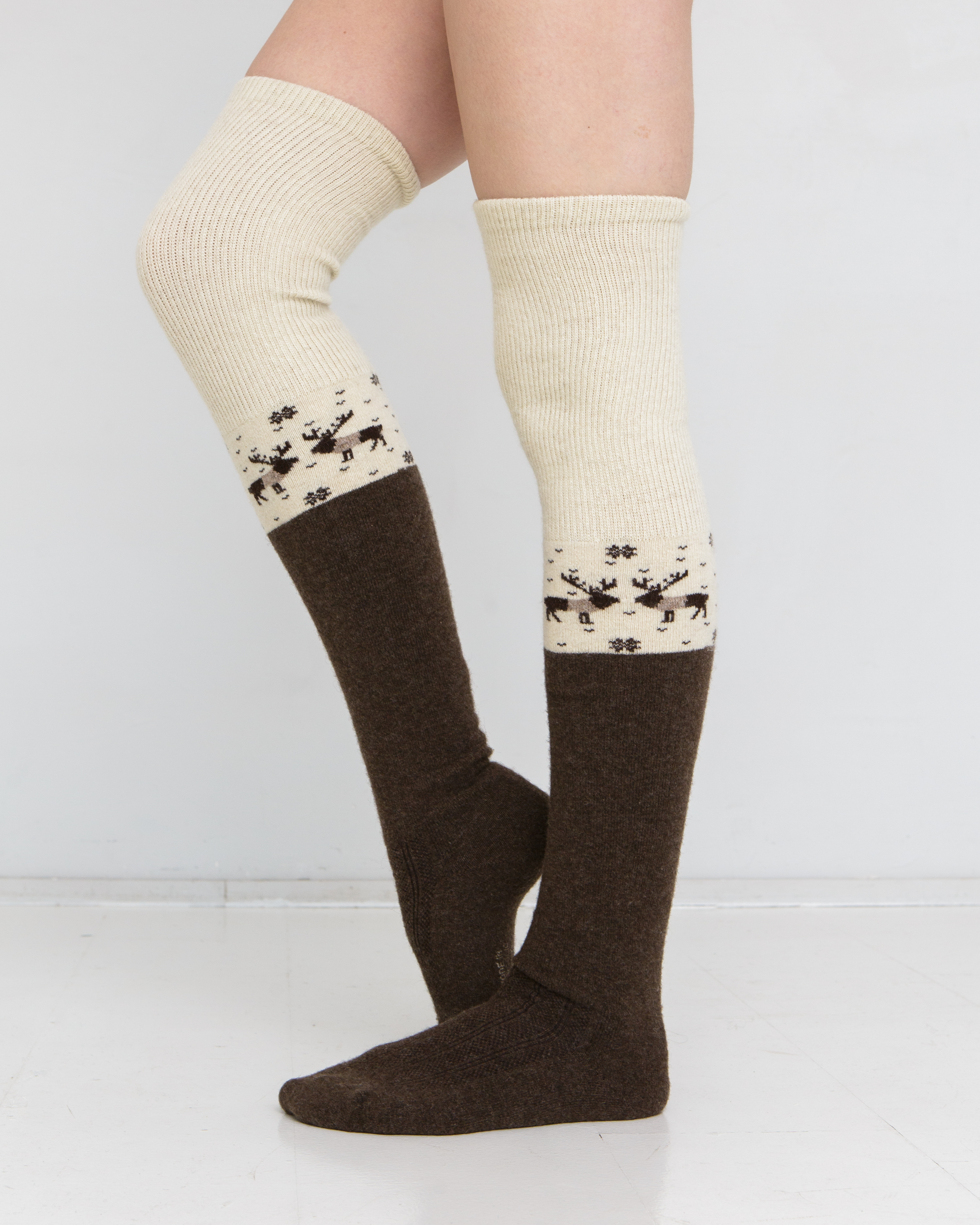 Теплые чулки из 100% шерсти с рисунком темно-коричневые