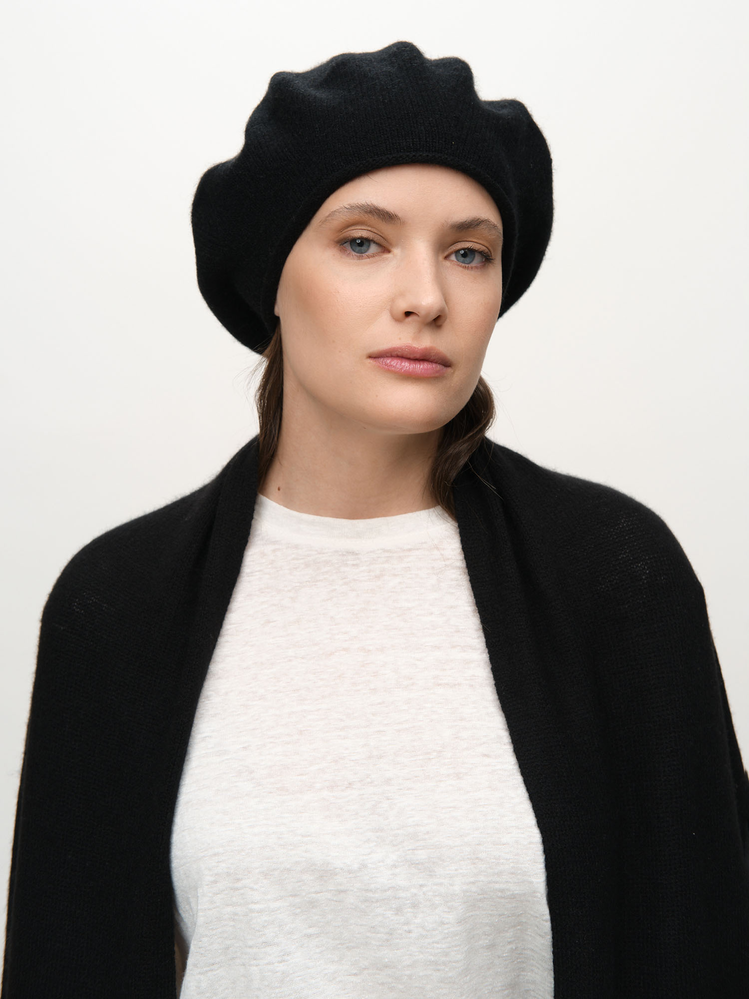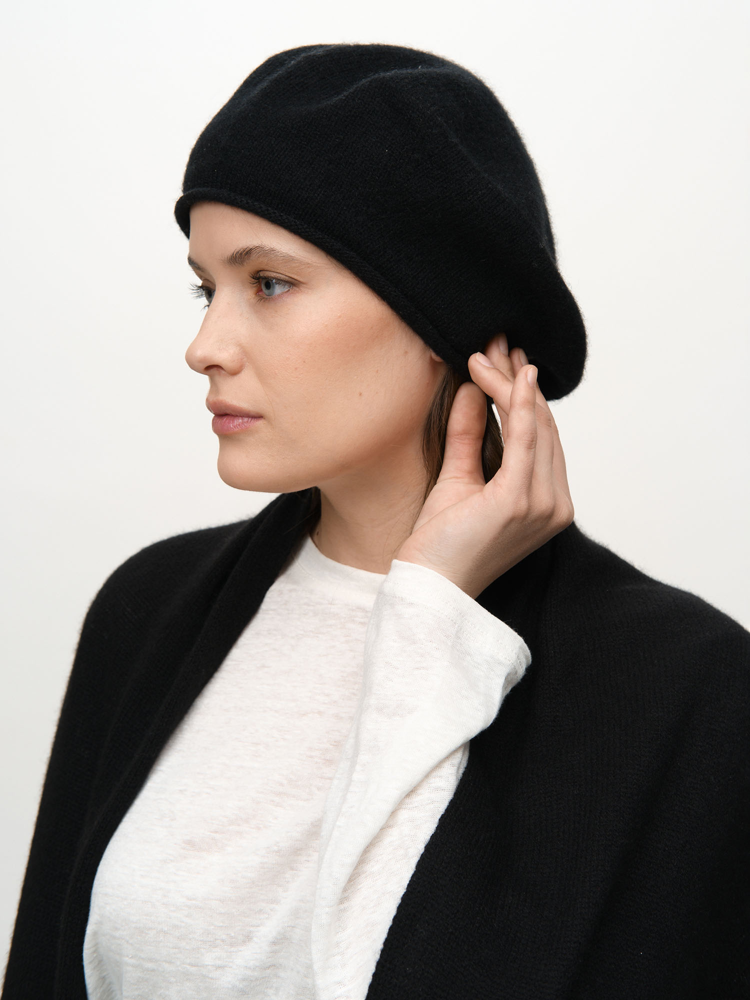 Черный цвет делает берет универсальным – он сочетается с любой одеждой и подходит под все сезоны. Носите его слегка набок для непринужденного шика или ровно для строгого образа.