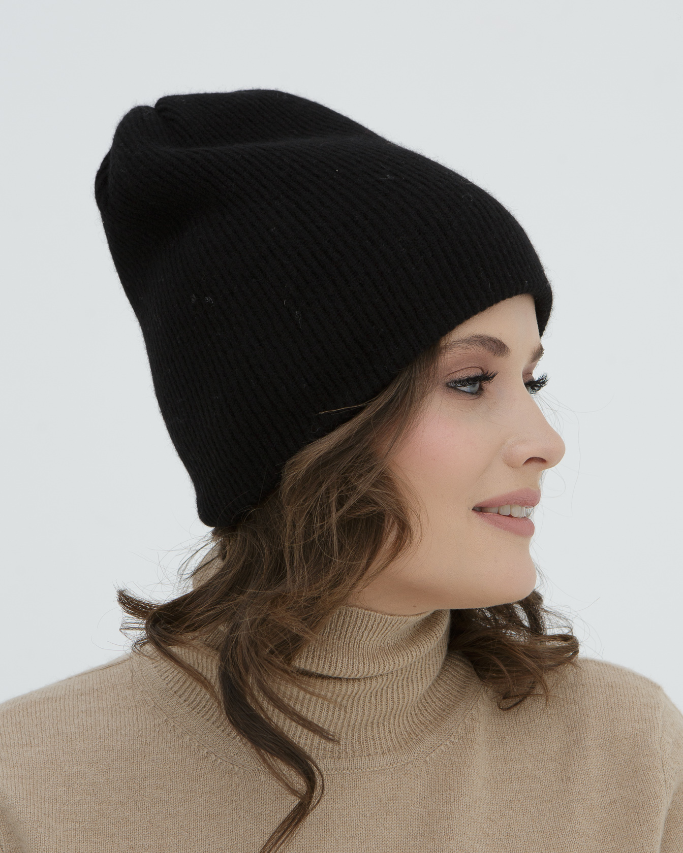 Двойная кашемировая шапка в чёрном цвете — универсальный аксессуар премиального уровня для холодного сезона. Лаконичный минималистичный дизайн подчёркивает элегантность и современный стиль. Благодаря двойной вязке модель обеспечивает усиленное тепло и комфорт даже в морозную погоду. Идеальный выбор для базового зимнего гардероба, который легко адаптируется под любой образ.