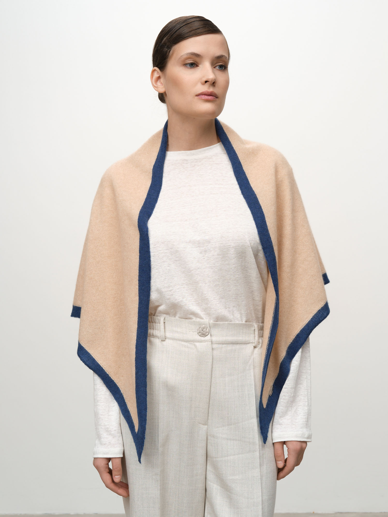 Косынка из кашемира 09103 бежевая-голубая