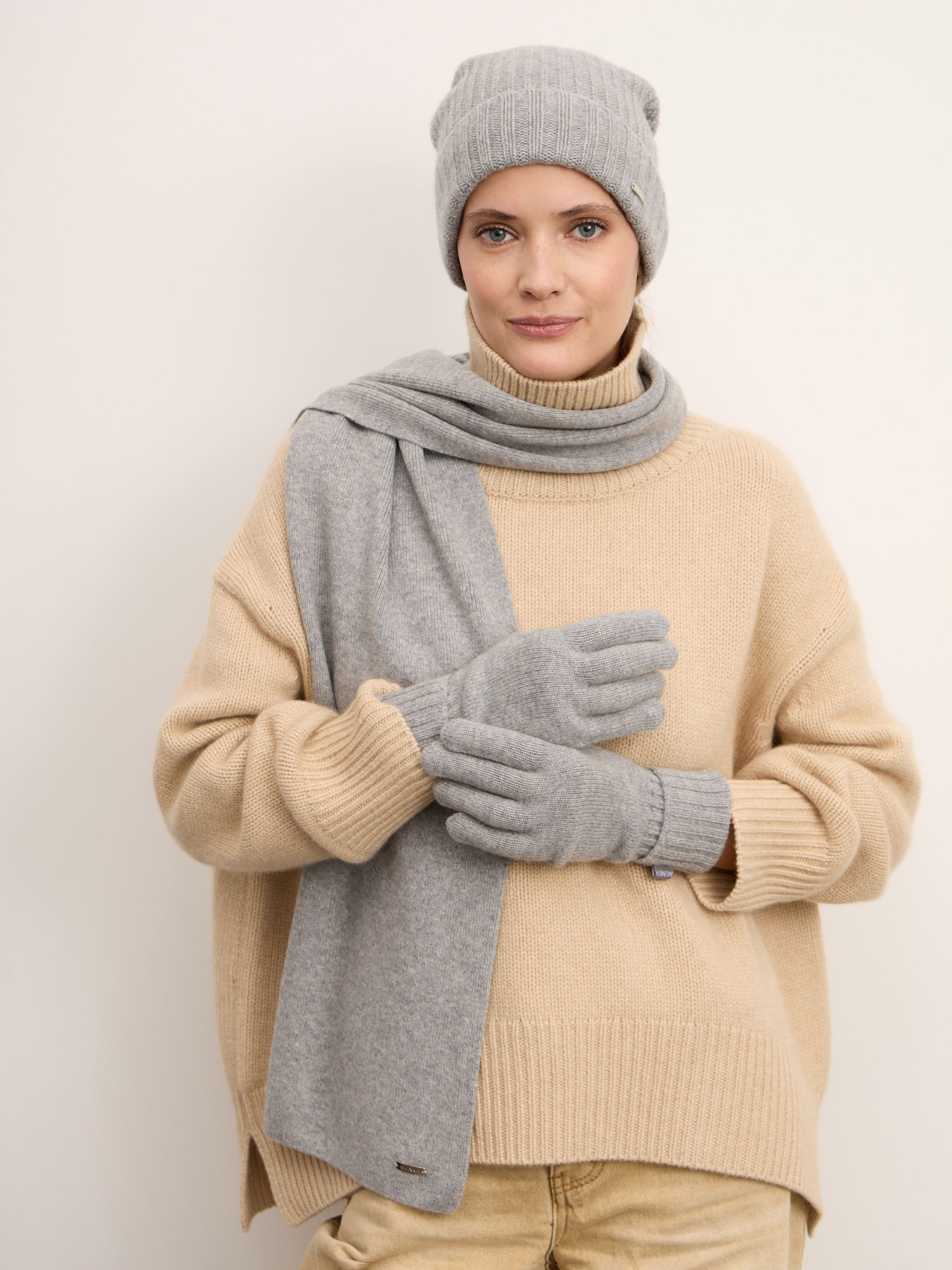 Перчатки выполнены из натурального кашемира — одного из самых ценных и редких материалов в мире. Волокно отличается исключительной тонкостью и мягкостью, обеспечивает тепло без утяжеления и позволяет коже «дышать». Кашемир гипоаллергенен и обладает природной терморегуляцией, что делает изделие особенно комфортным для ежедневного использования