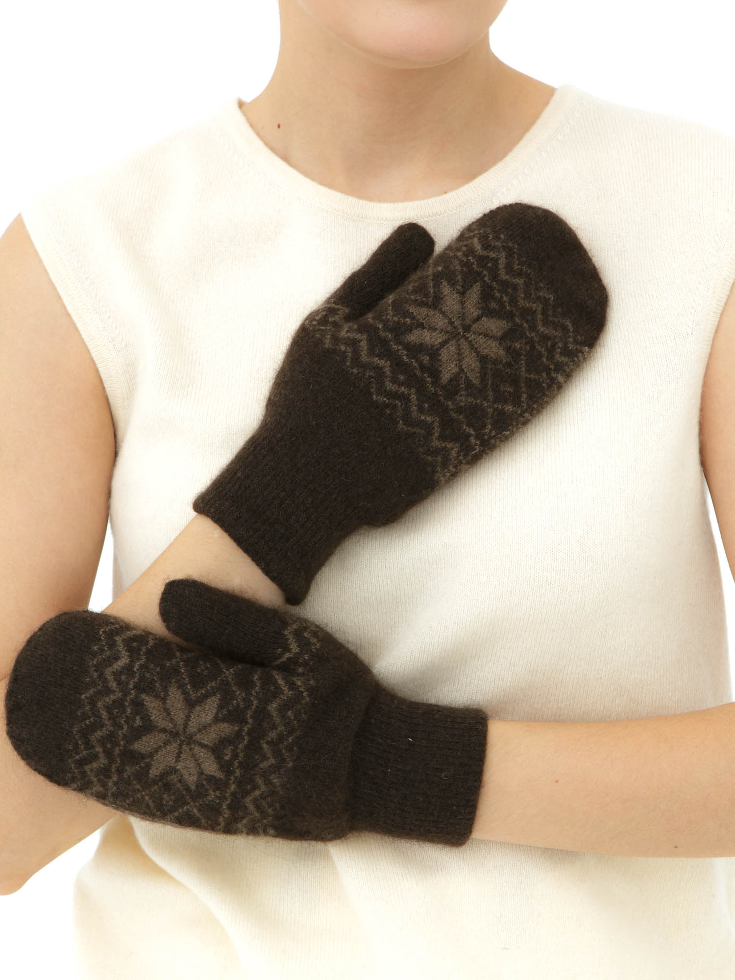 Варежки из пуха яка с рисунком UL темно-коричневые