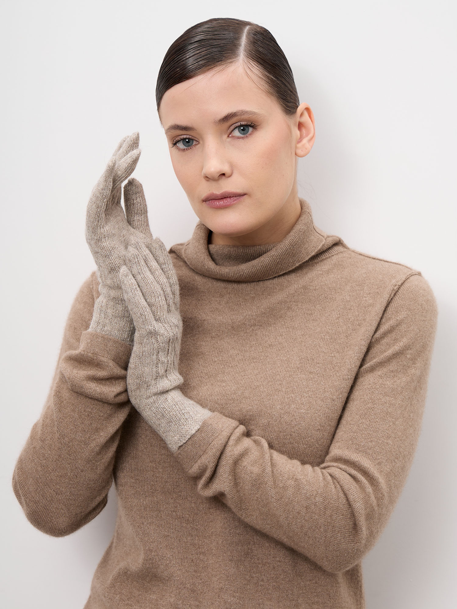 Перчатки подбирала под шапку серо-бежевого цвета. Я называю это цвет валенок. Подошли идеально. Качество действительно очень приятное, мягкие, длинные. Спасибо! |