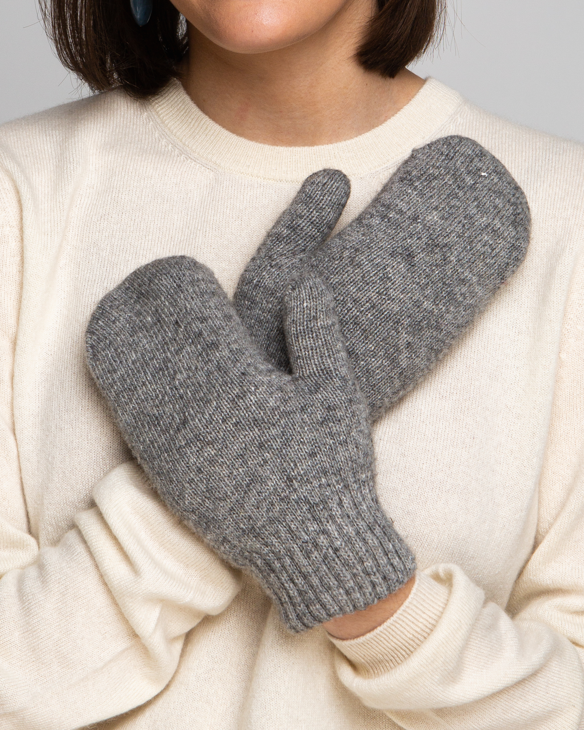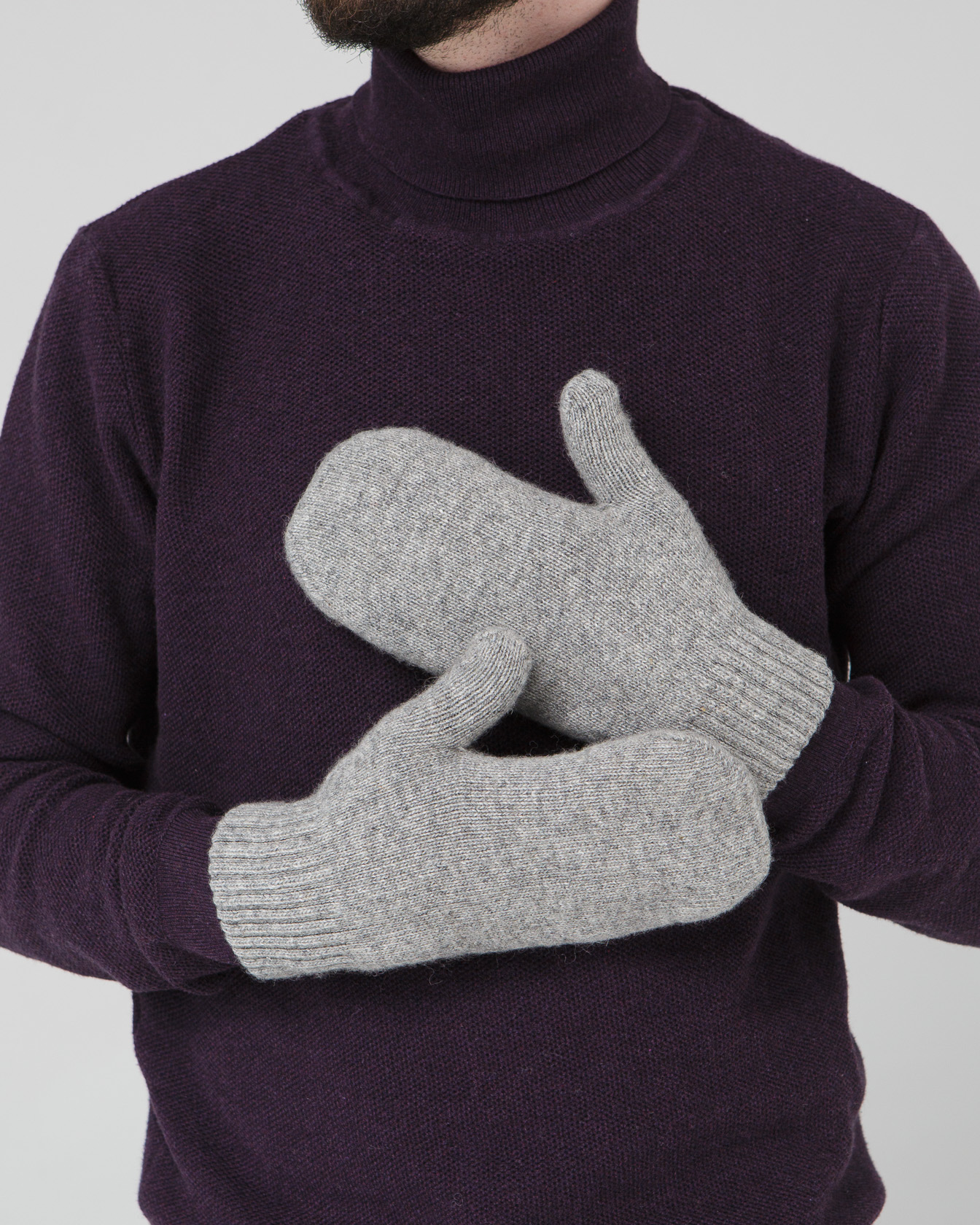 Теплые варежки из монгольской шерсти серые