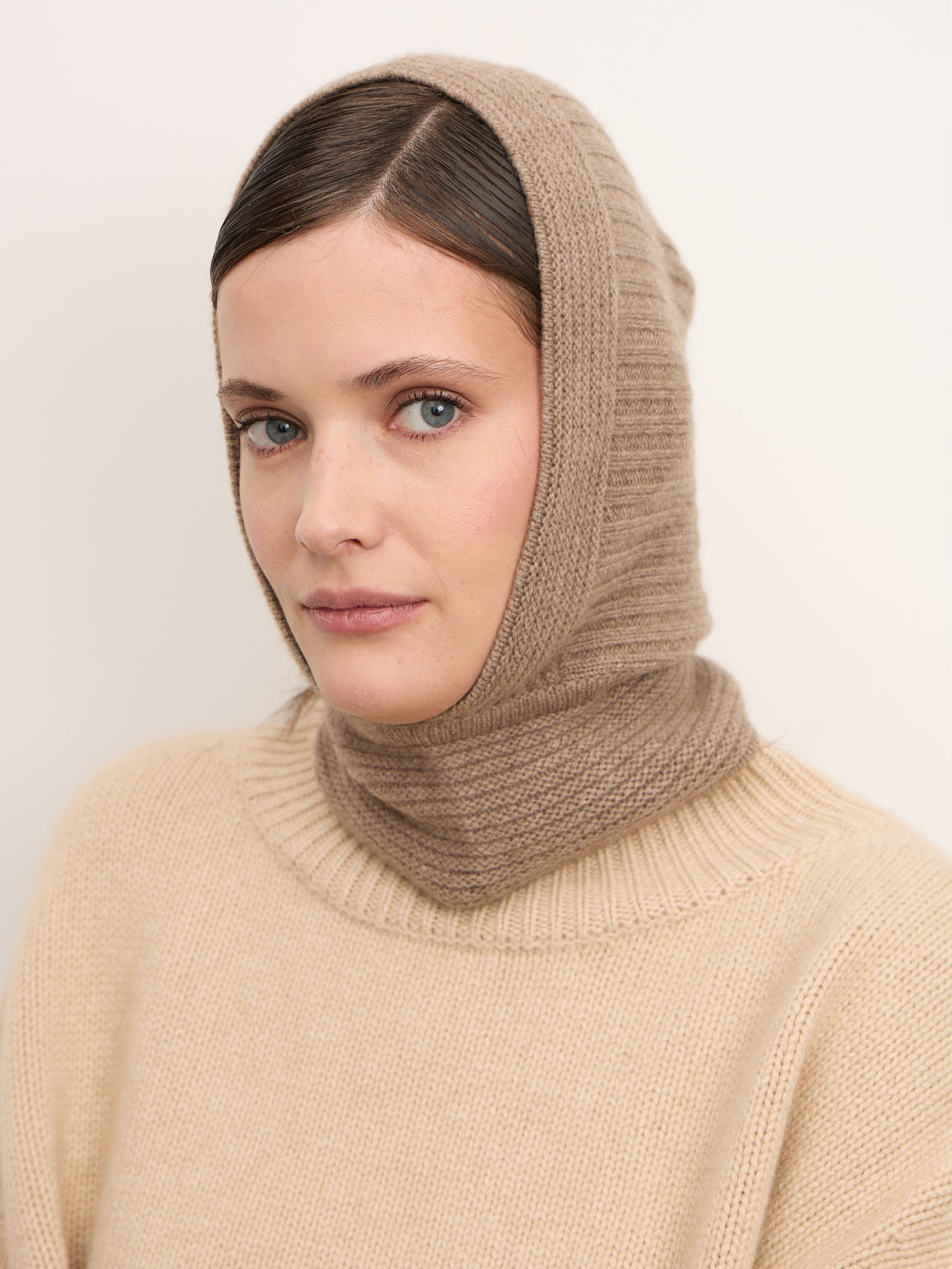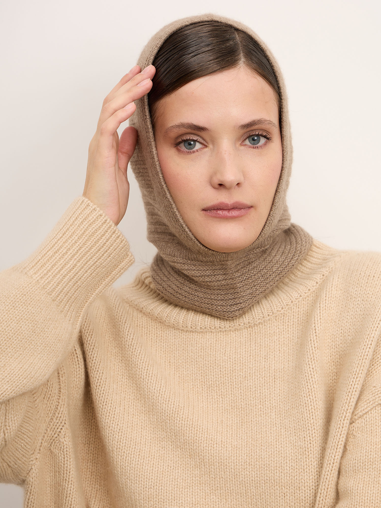 Балаклава из кашемира в оттенке капучино — это современный акцент, который объединяет эстетику, комфорт и естественную теплоту натурального волокна.