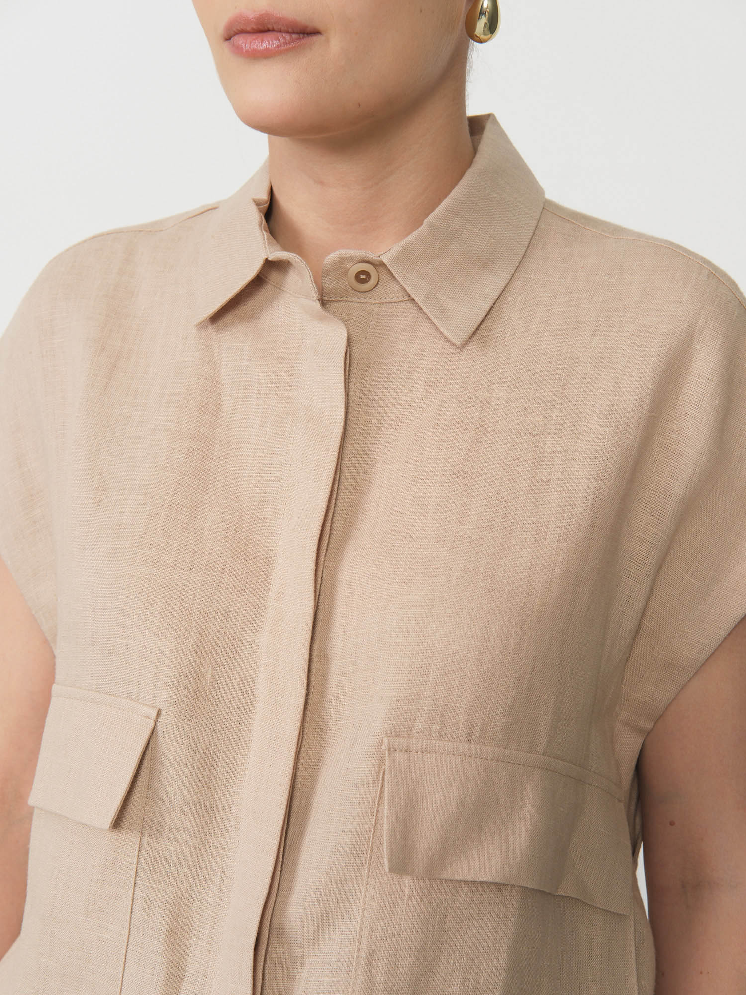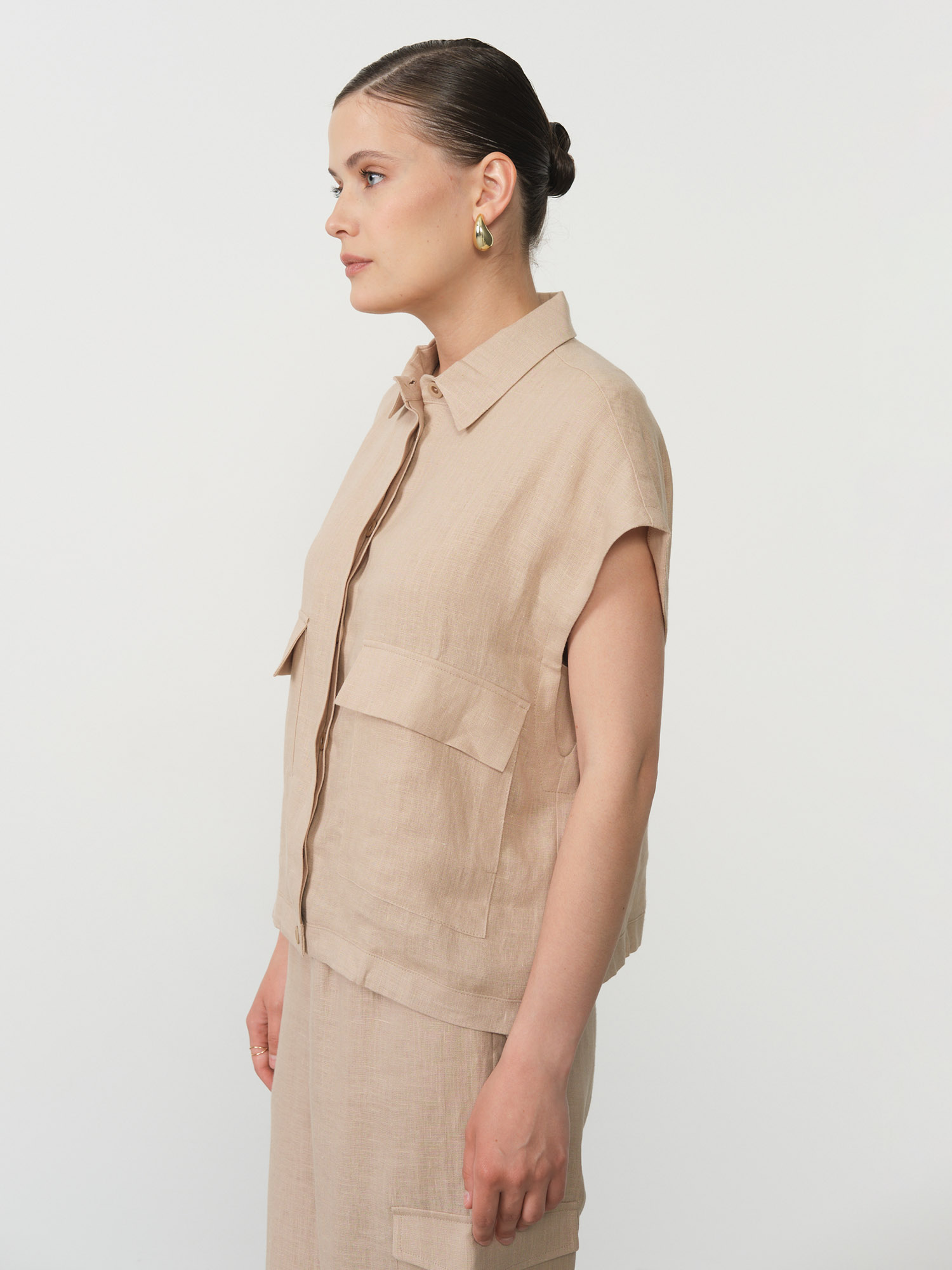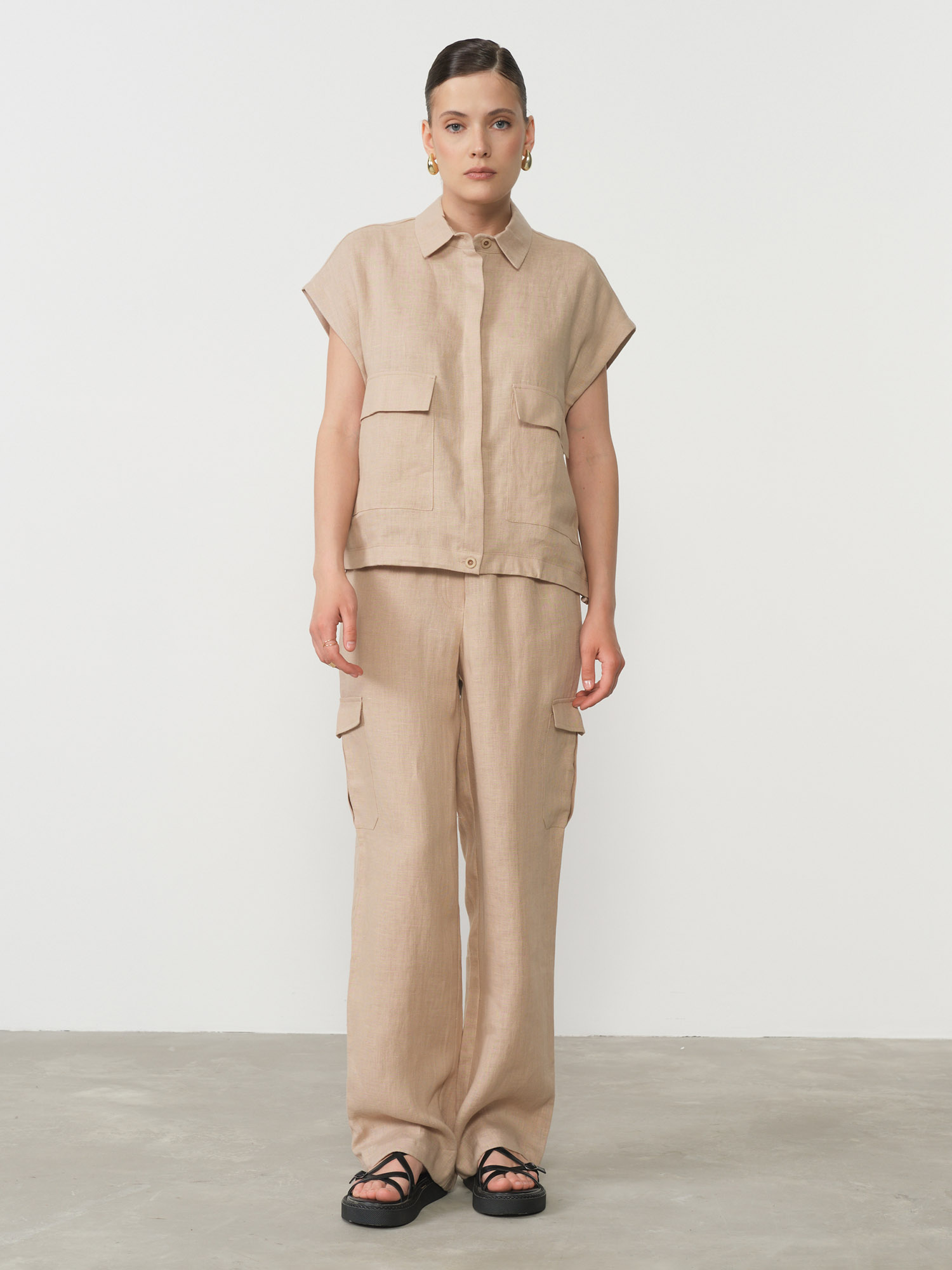 Женская блузка из льна — стильная и функциональная модель в современном утилитарном стиле. Идеально подходит для создания лёгких и актуальных летних образов.