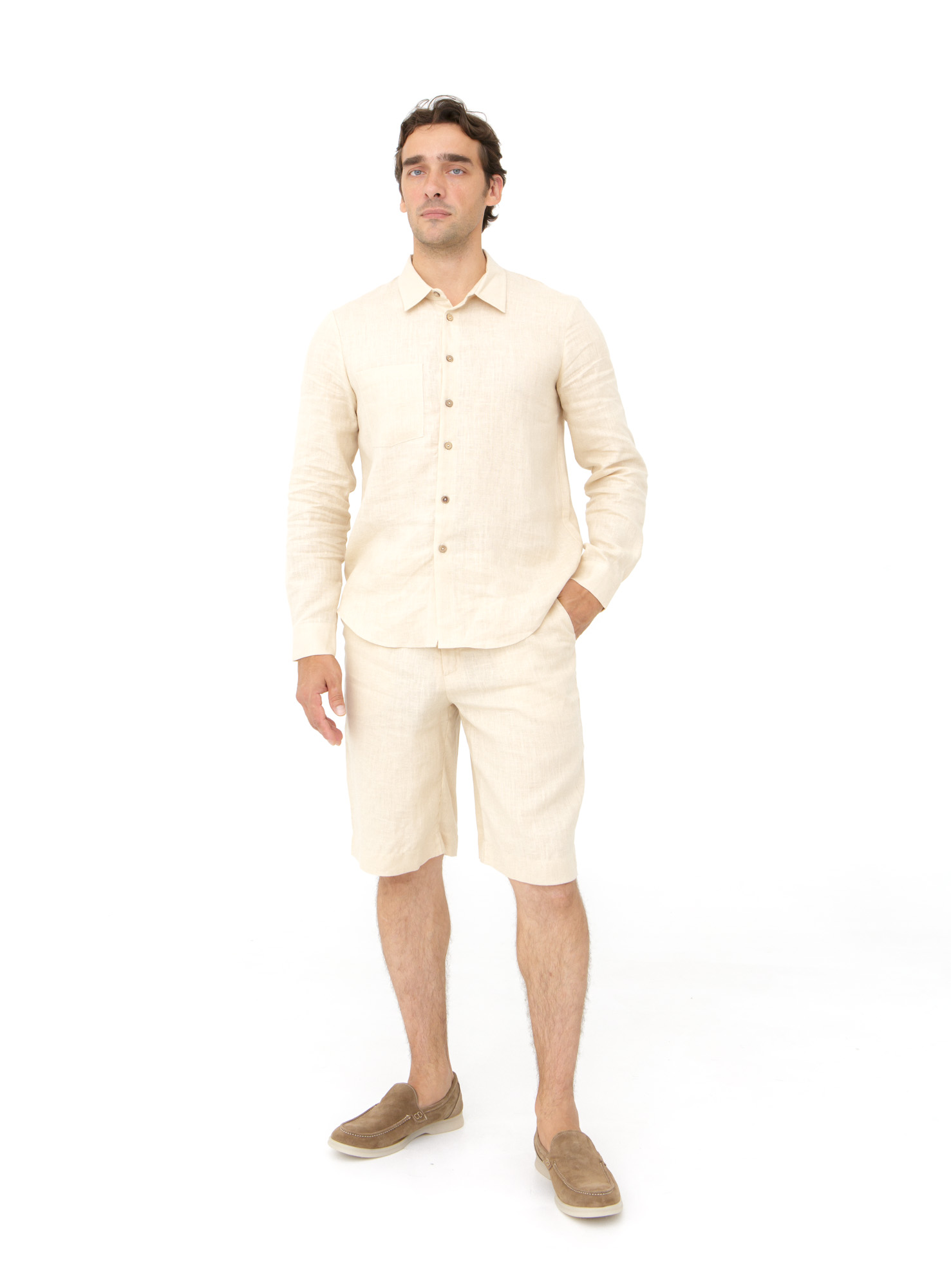 Шорты идеально подходят для создания расслабленных летних образов. Сочетайте с льняной рубашкой, футболкой или поло для повседневного стиля. Дополните образ лоферами, сандалиями или кедами — отличный вариант для отдыха, путешествий и прогулок по городу.