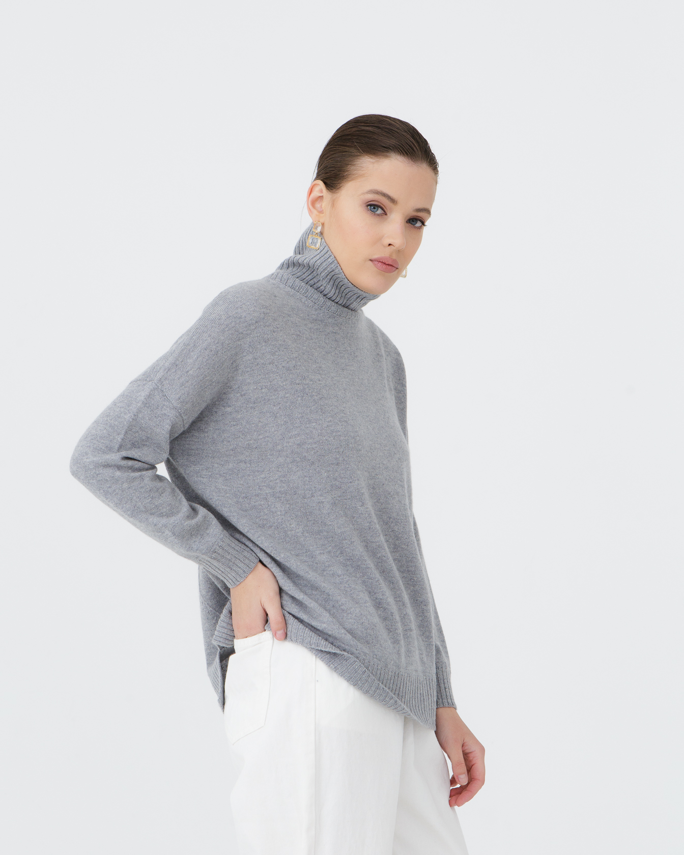 Свободный силуэт обеспечивает удобную посадку и свободу движений. Мягкий кашемир приятно прилегает к телу и создаёт ощущение лёгкого тепла.